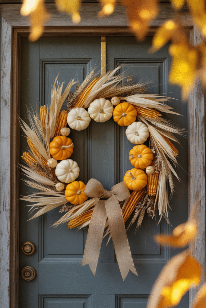 12. Corn Husk & Pumpkin Wreath