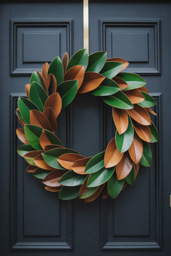 Magnolia leaves, with their glossy tops and velvety undersides, create a sophisticated look that transitions beautifully into winter.