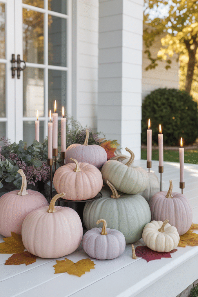 For a softer, more modern look, paint your pumpkins in muted tones like blush, sage, lilac, or ivory. Great for those who want something spooky and Instagram-worthy.