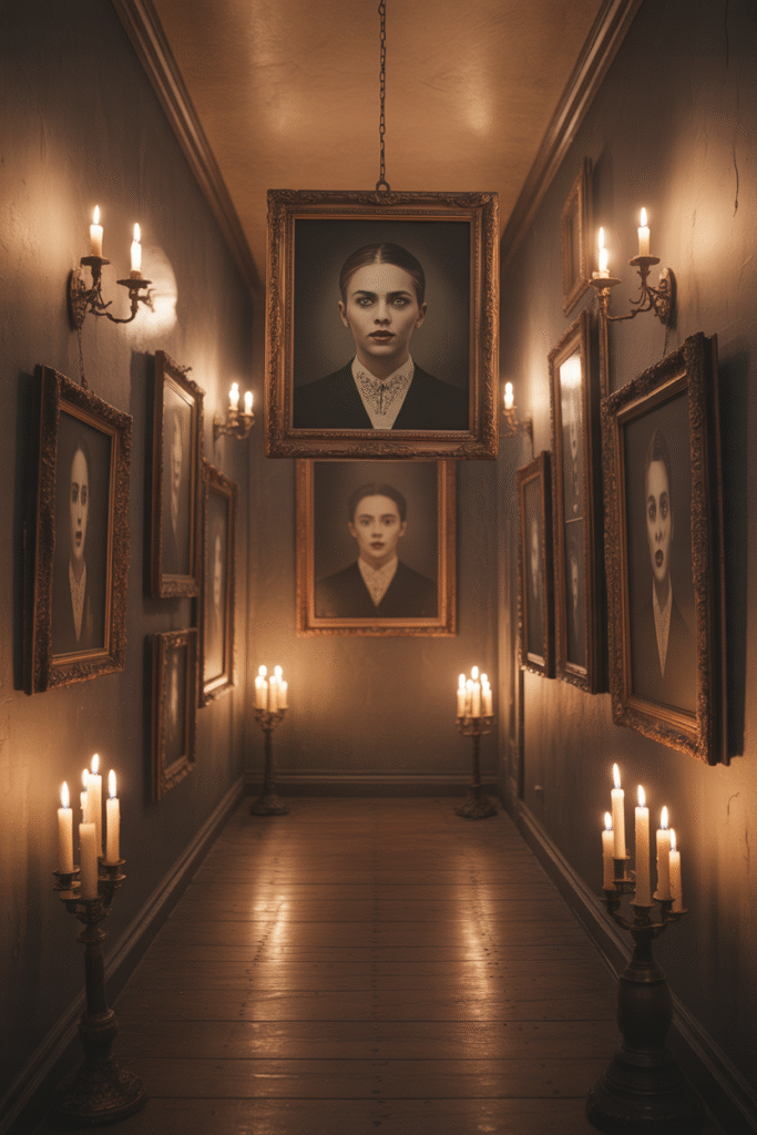 Tech meets terror. This year, AI-generated haunted portraits are trending — especially those that subtly change expression as guests walk by. Print yours, frame them in antique-looking gold frames, and get ready for the compliments (and screams).