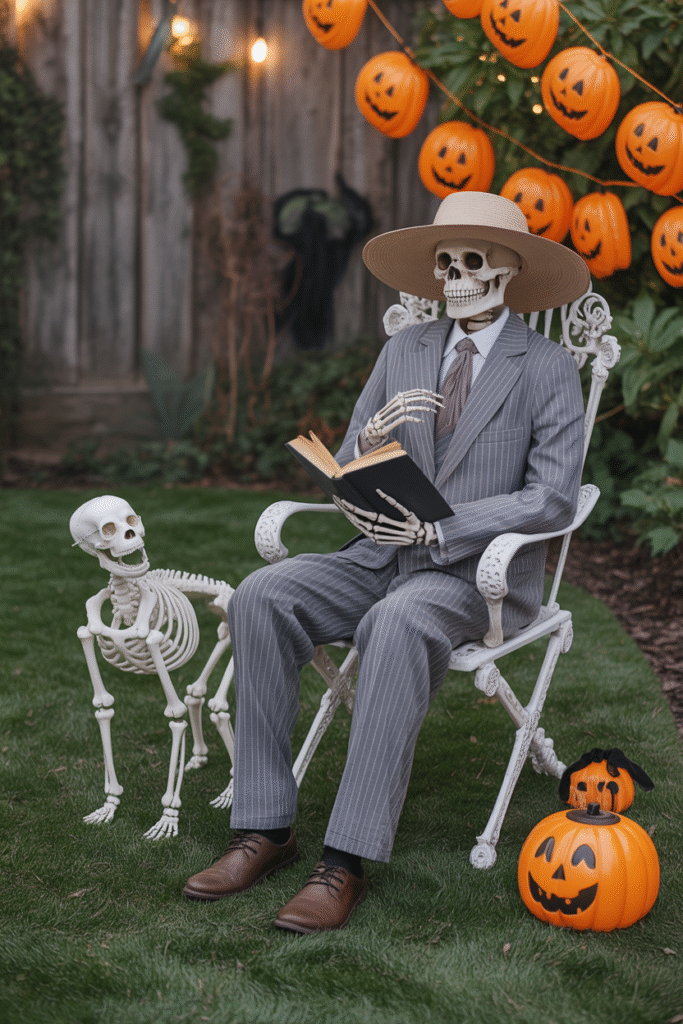 This hilarious trend is sticking around for 2025. Pose life-sized skeletons around your house or yard doing mundane things: reading, gardening, walking the dog, sipping wine — you name it. Bonus points for costumes.