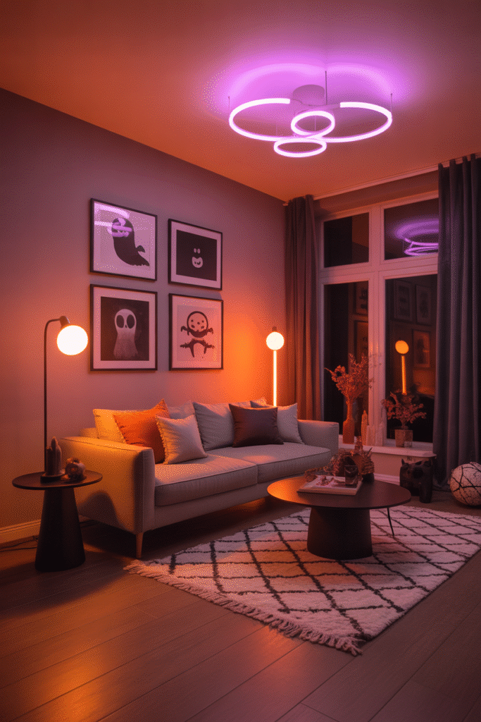 Transform your entire atmosphere with smart lighting. Set your bulbs to dim purples, oranges, or blood-red tones for instant haunted-house vibes — all controlled by your phone or voice.