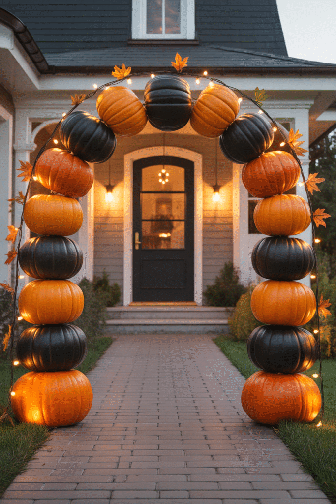This one’s for the DIYers. Create a dramatic entrance with a pumpkin arch made from foam pumpkins (lightweight!) stacked around a frame. Paint them matte black, deep orange, or go pastel for something different.
