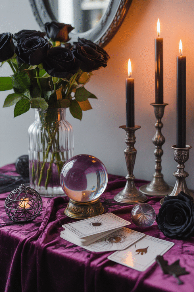 - Add crystal balls, vintage candle holders, and tarot cards.