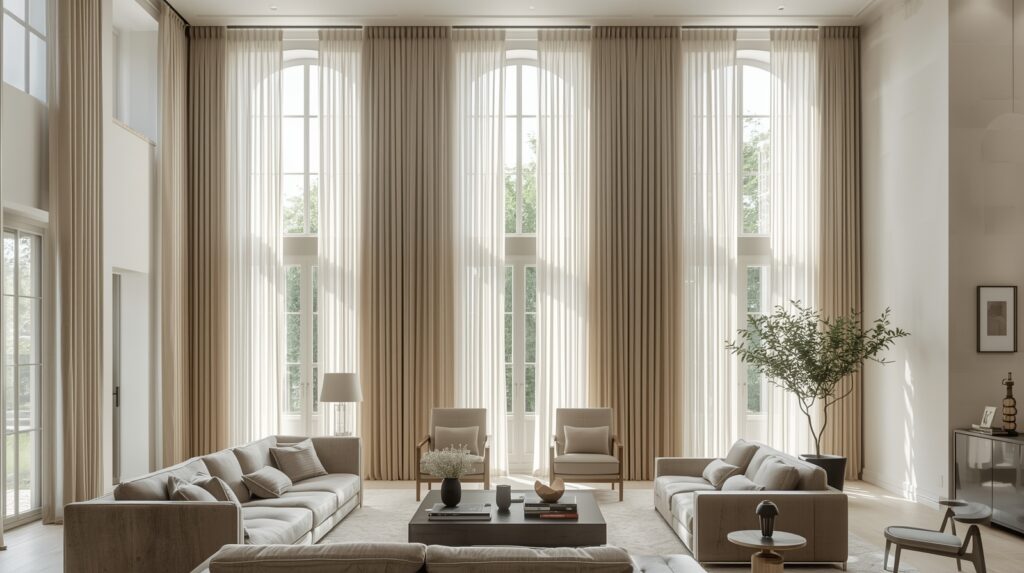 Don’t just decorate side-to-side — think up! Use tall bookshelves, vertical art, or stacked decor to draw the eye upward.